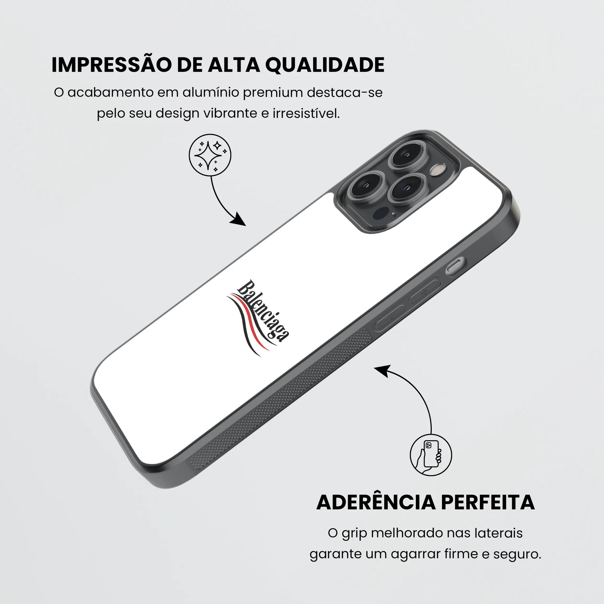 O seu Design em material resistente e leve e a tecnologia utlizada, não só oferecem proteção como garantem que tuas criações se mantenham vibrantes e duráveis, mesmo com o uso diário. Tem cantos reforçados e protege o teu telemóvel contra arranhões e quedas, enquanto destaca a tua personalidade única! Temos mais de 300 Designs para escolheres ou personaliza-a!