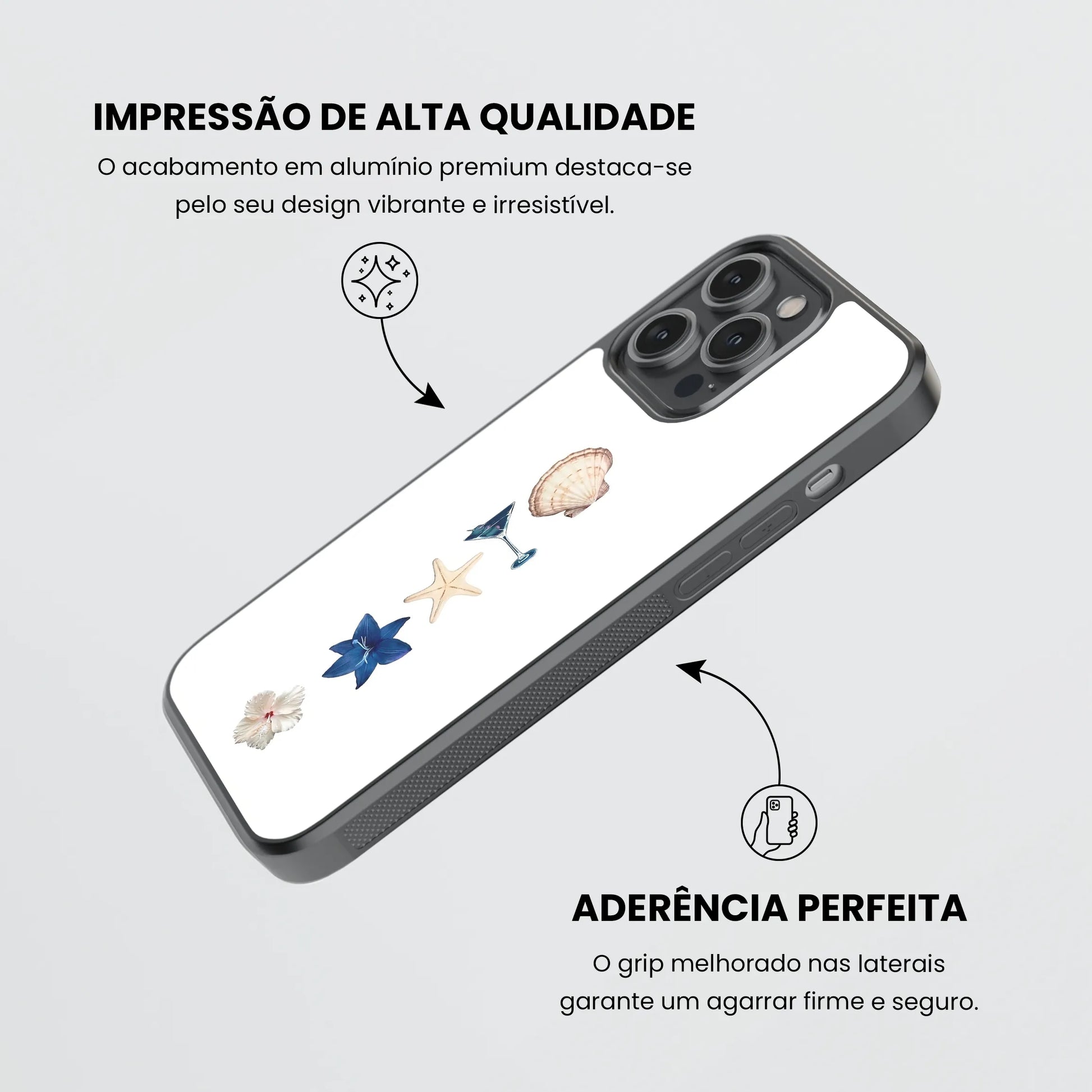 O seu Design em material resistente e leve e a tecnologia utlizada, não só oferecem proteção como garantem que tuas criações se mantenham vibrantes e duráveis, mesmo com o uso diário. Tem cantos reforçados e protege o teu telemóvel contra arranhões e quedas, enquanto destaca a tua personalidade única! Temos mais de 300 Designs para escolheres ou personaliza-a!
