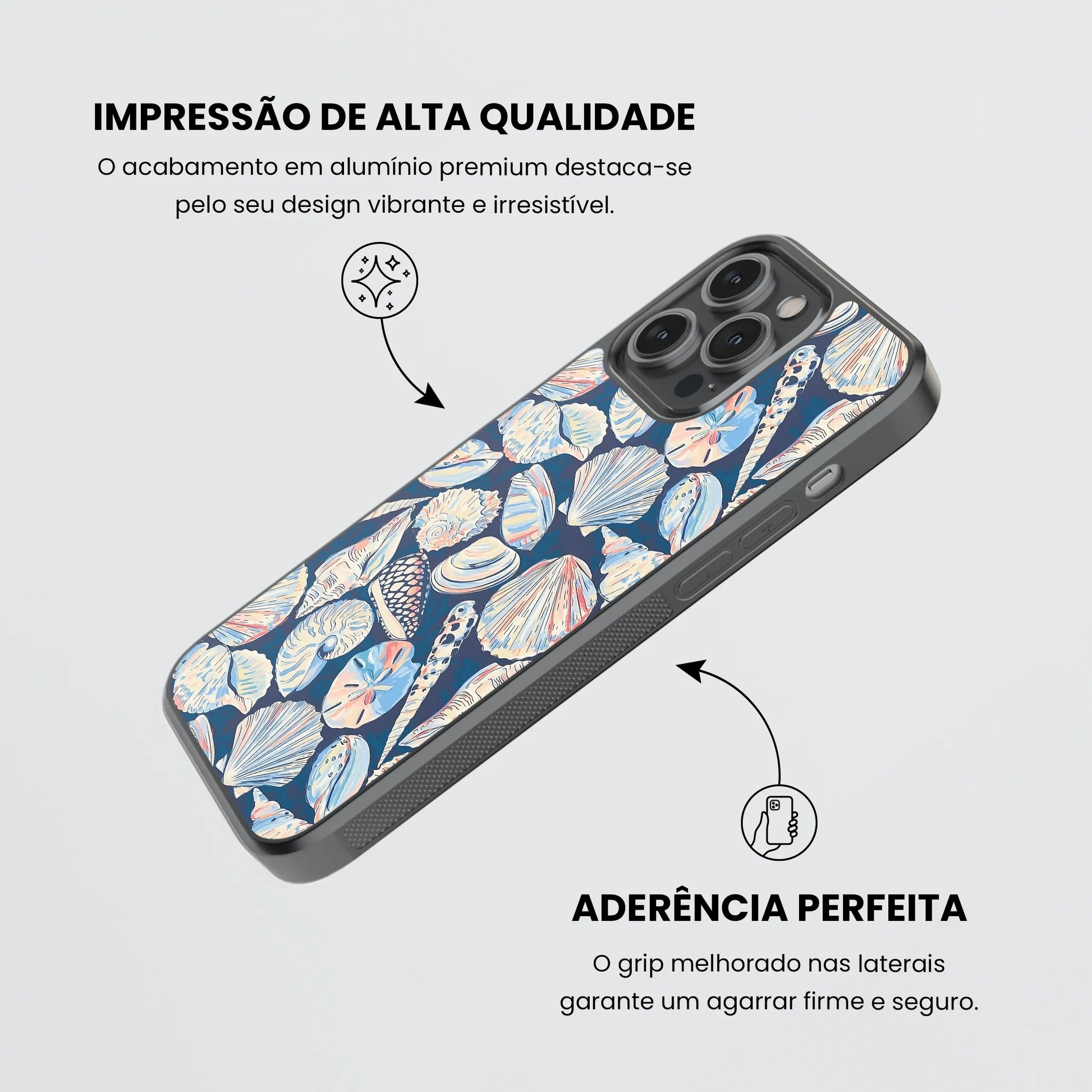 O seu Design em material resistente e leve e a tecnologia utlizada, não só oferecem proteção como garantem que tuas criações se mantenham vibrantes e duráveis, mesmo com o uso diário. Tem cantos reforçados e protege o teu telemóvel contra arranhões e quedas, enquanto destaca a tua personalidade única! Temos mais de 300 Designs para escolheres ou personaliza-a!