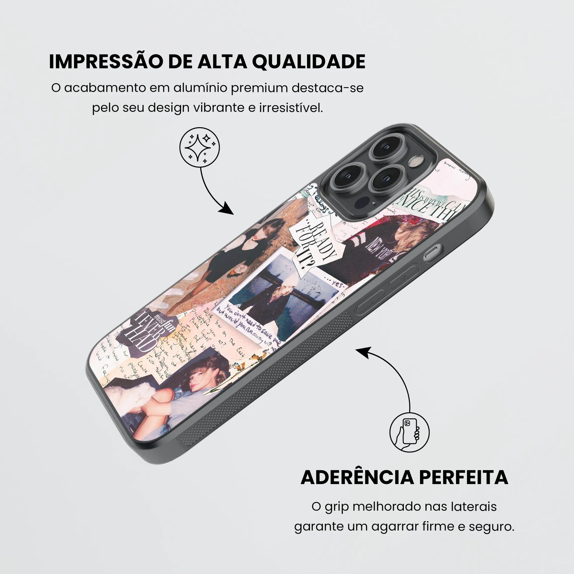 O seu Design em material resistente e leve e a tecnologia utlizada, não só oferecem proteção como garantem que tuas criações se mantenham vibrantes e duráveis, mesmo com o uso diário. Tem cantos reforçados e protege o teu telemóvel contra arranhões e quedas, enquanto destaca a tua personalidade única! Temos mais de 300 Designs para escolheres ou personaliza-a!