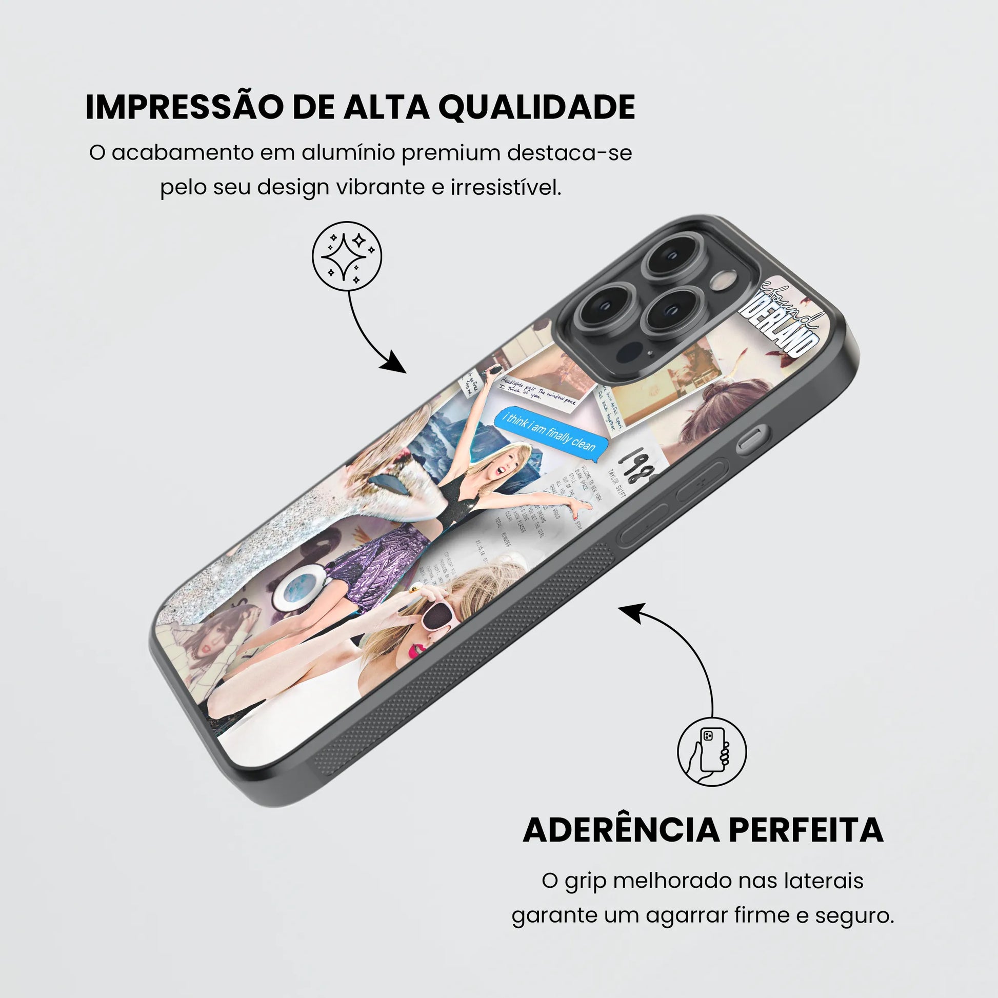 O seu Design em material resistente e leve e a tecnologia utlizada, não só oferecem proteção como garantem que tuas criações se mantenham vibrantes e duráveis, mesmo com o uso diário. Tem cantos reforçados e protege o teu telemóvel contra arranhões e quedas, enquanto destaca a tua personalidade única! Temos mais de 300 Designs para escolheres ou personaliza-a!